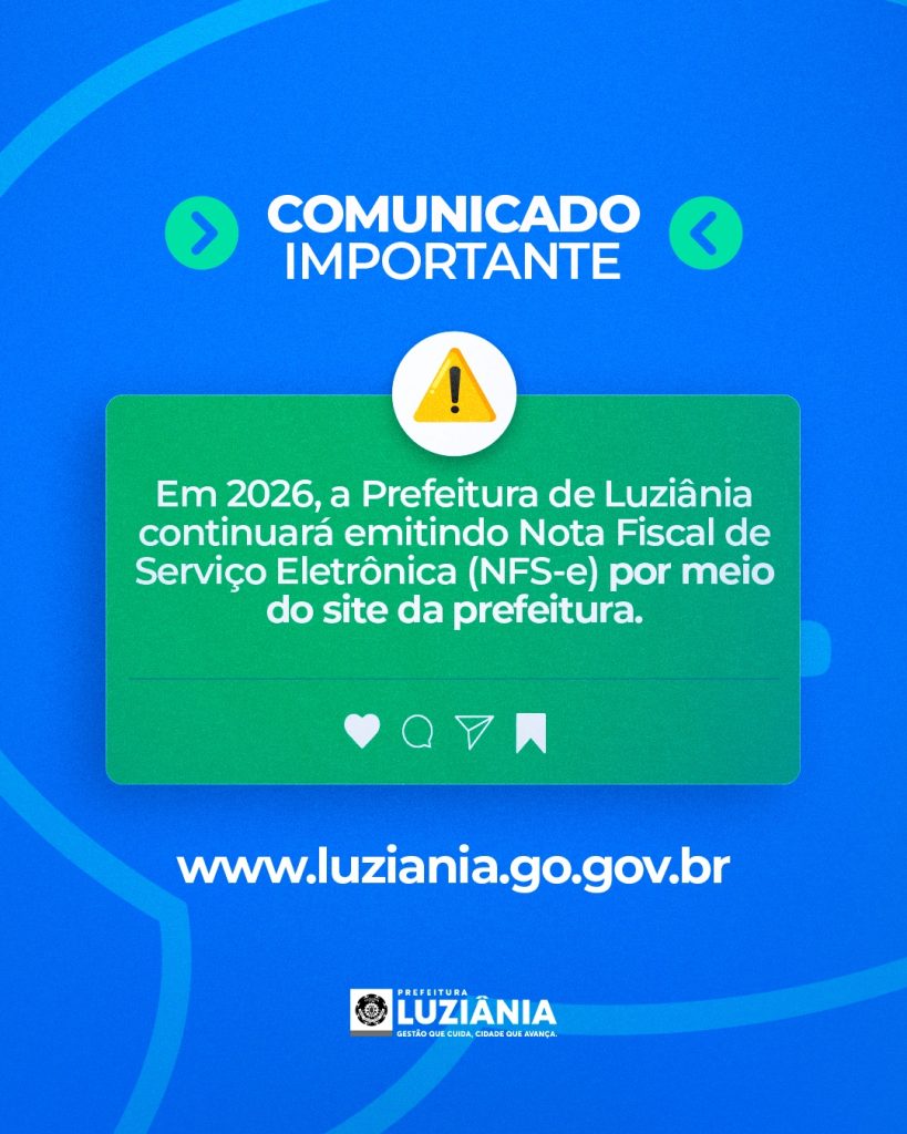 A Prefeitura de Luziânia informa que, no ano de 2026, a emissão da Nota Fiscal de Serviço Eletrônica (NFS-e) continuará sendo realizada exclusivamente por meio do site oficial da Prefeitura, sem alterações no sistema atualmente utilizado.