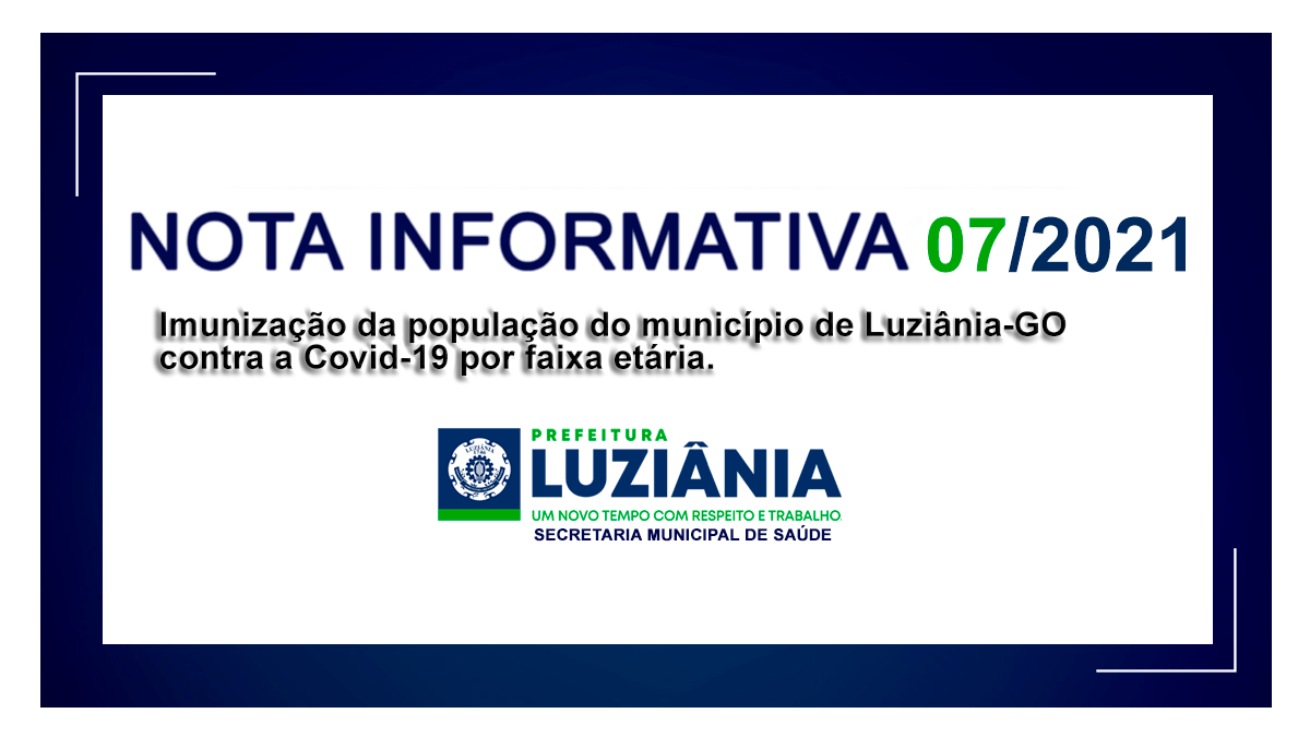 NOTA INFORMATIVA Nº 07/2021 – SMS – Imunização da população do município de Luziânia-GO contra a Covid-19 por faixa etária.